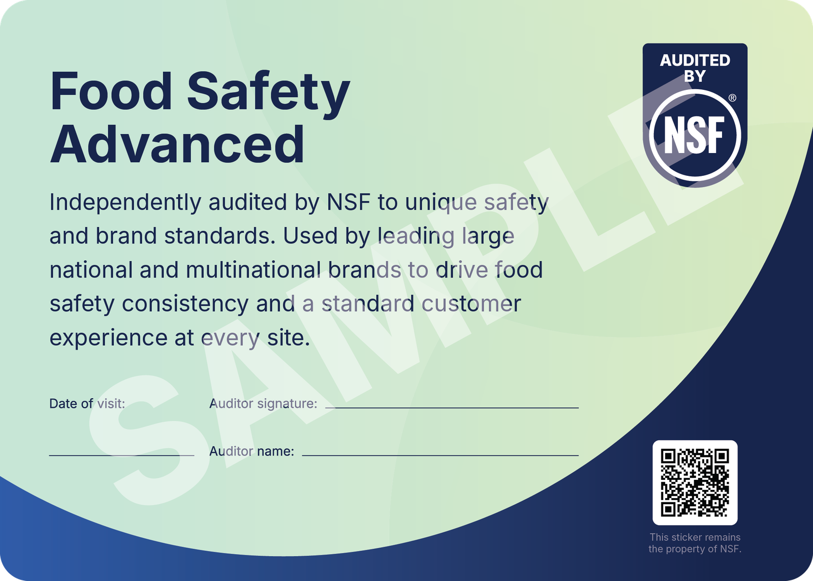 NSF Food Safety Essentials: This foundational program evaluates four core areas: food safety, cleanliness, repair and maintenance, and brand standards—providing small to medium-sized food retailers and restaurants with actionable insights, a detailed audit report and the optional NSF Food Safety Essentials badge for display.